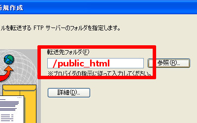 ホームページビルダーのツールバーで「サイト」 → 「転送設定」 → 「転送設定の新規作成」をクリックします。