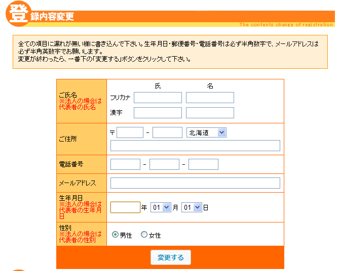 2. ページ上部に「登録内容変更」のフォームが表示されます。