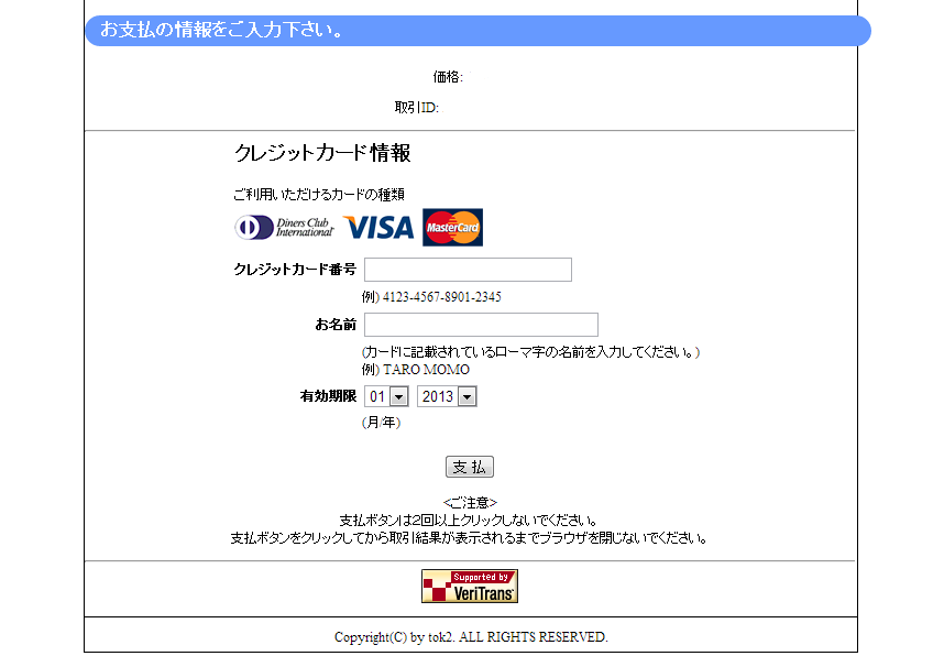 クレジットカードでの支払い