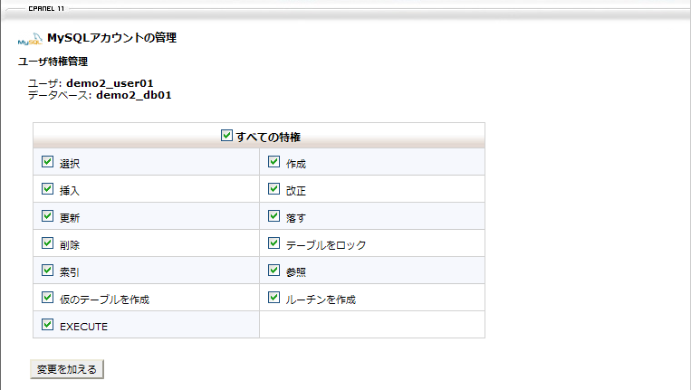 すべての特権」をチェックして、すべての項目にチェックを入れます。