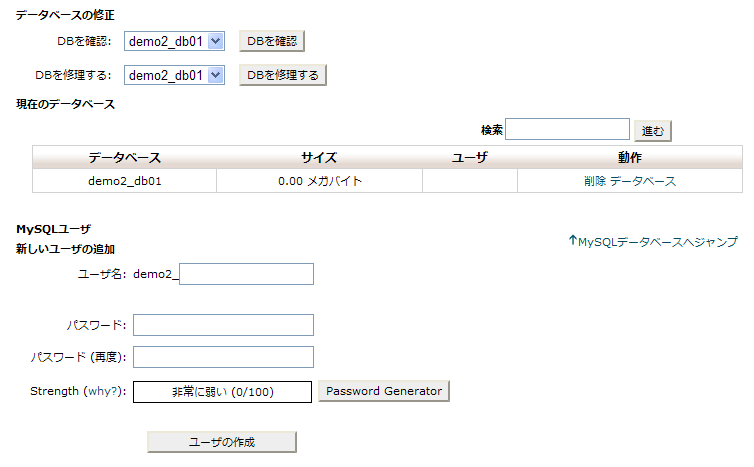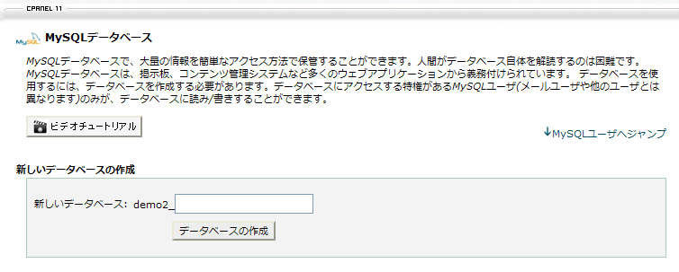 cPanel上で、データベースの作成などの管理を行うことができます。
