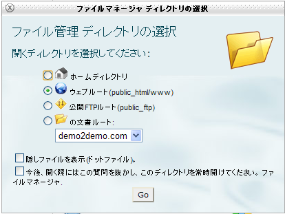 ファイルマネージャディレクトリの選択」というダイアログが表示されますので「