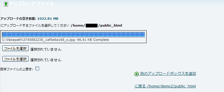 「<ファイル名>: xxxx KB Complete」と表示されましたらアップロードは完了です。
