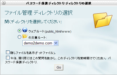 パスワード保護ディレクトリの選択」というダイアログが表示されますので「