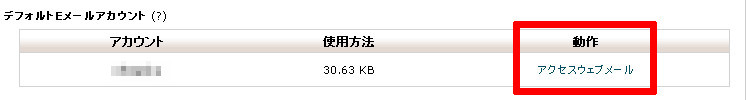デフォルトEメールアカウントの「アクセスウェブメール」をクリックします。