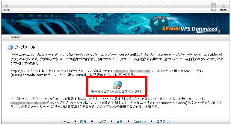 「安全なウェブメールのログインに進む」をクリックします。