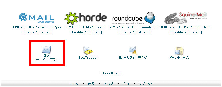「設定 メールクライアント」をクリックします。