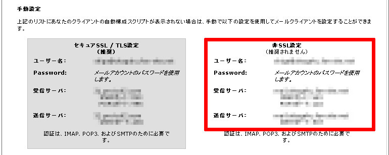 非SSL設定の情報を確認してください。