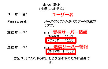 設定情報確認は「非SSL設定」をご確認下さい。