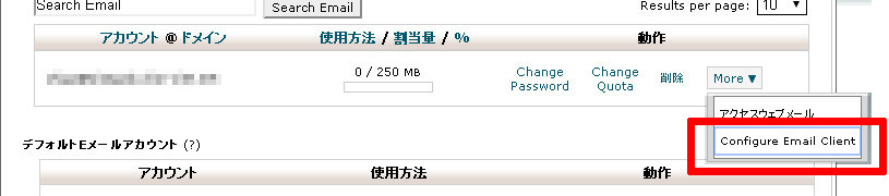 確認するメールアドレスの「More」をクリックして「Configure Email Client」を選択してください。