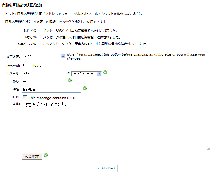 cPanel上で、自動返信機能を設定できます。