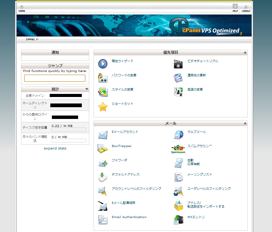 「ログイン」をクリックするとcPanelにログインいただけます。
