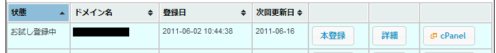 cPanelのログインアカウント名・パスワードがわからない場合はユーザー専用ページヘログインの上、対象サイトの「詳細」ボタンよりご確認ください。