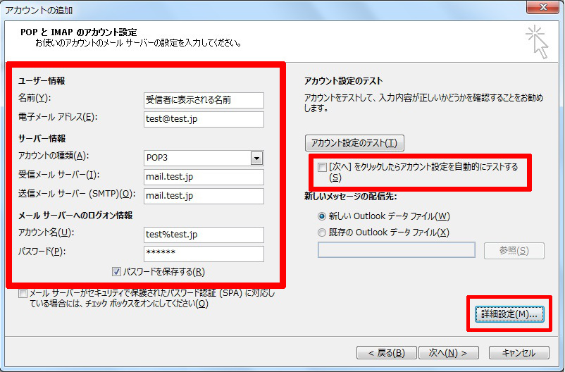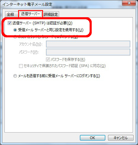 サーバー名などの情報は、「メールサーバー情報を確認する」をご参照下さい。