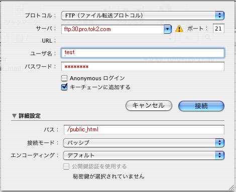 | サーバ | お客様の「FTPサーバー名」を入力してください。