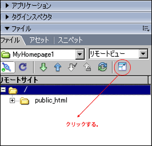 Dreamweaverの画面右側に、下図のような画面が御座いますので、 「リモートホストに接続」ボタンをクリックし、接続を行って下さい