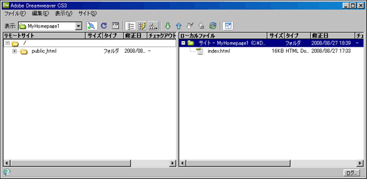 左がサーバー側(リモートホスト)、右が会員様のファイル一覧(ローカル)になります。