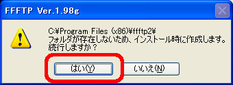 下記のような画面が表示されますが「はい(Y)」をクリックして次へ進みます。