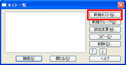 FFFTPが起動すると「ホスト一覧」という画面が表示されますので
