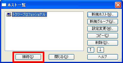 「ホスト一覧」の画面に戻りますので「ホストの設定名」で設定した接続先を選択して 「