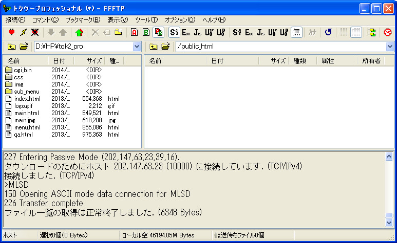 PASVモードを使う(V)」にチェックが入っているか確認してください。
